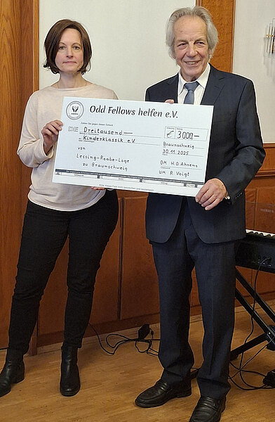 Vor der Ehrung erfreuten uns fünf Jugendliche des Vereins Kinderklassik musikalisch mit ihren Einzeldarbietungen und im Duo. Der Verein fördert junge Nachwuchsmusiker*innen in ihrer musikalischen und künstlerischen Entwicklung. Seit der Vereinsgründung in 2013 sind wir als Loge dem Verein verbunden und übergaben an unserem Stiftungsfest zusammen mit „Odd Fellows helfen e.V.“ eine Spende von 3.000 Euro.