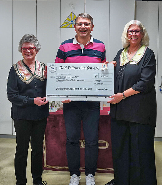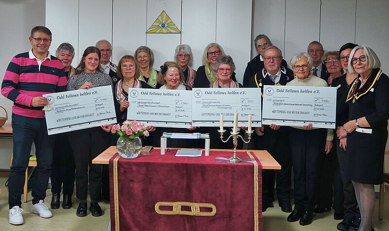 Die "Württemberg-Loge Nr.1 zur Einigkeit", die aus der Württemberg-Loge und der RL Einigkeit hervorgeht, unterstützt im Rahmen einer feierlichen Festloge des Neujahrsempfangs vier Organisationen und übergibt Geld- und Sachspenden in einer Gesamtsumme von über 8.000 Euro. Wir danken dem Fonds "Odd Fellows helfen", der ein Teil der Spenden mitträgt.