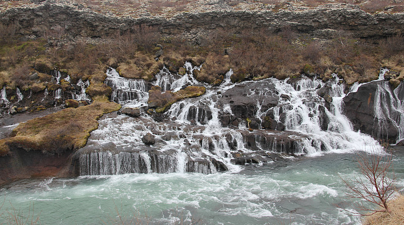 Der vierte Tag unseres Island-Abenteuers sollte der spektakulärste werden. Diesmal nahmen wir die Nationalstraße Nr. 1 nach Norden Richtung Hvalfördur-Fjord, den die Straße in einem kilometerlangen Tunnel unterquert. Es ist kein vierspuriger Schweizer Autobahntunnel mit Notausgangslichtern alle hundert Meter, eher ein Bergwerksstollen mit Gegenfahrbahn, in dem man Beklemmung fühlt. Er soll aber sicher sein, sagt Tanja. Auf der anderen Seite kommen wir bald zu einem Gehöft mit Kraftwerkstation. Wir besuchen es hauptsächlich wegen der heißen Quellen, die dort an einem kleinen Hang an die Oberfläche kommen. Überall ist Dampf. Besonders schön ist die Landschaft hier, die einsam vor dem Auge ruht mitsamt einer langen Dampfpipeline darin. Das Blubbern und Rauschen des Wassers, die Dampfsäulen und der weite Blick, sie haben was Besänftigendes zwischen Mensch und Natur. Ein wenig erinnert die Landschaft im Nebel der heißen Quellen an Bilder von Caspar David Friedrich.