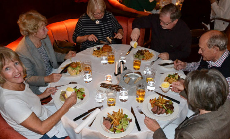 Das Abendessen nahmen wir im Hilton-Hotel ein, weil unser eigenes Hotel keine Restauration hat. Aber auf uns 21 Restaurantgäste war auch das Hilton nicht vorbereitet. Der Oberkellner bat um eine halbe Stunde Vorbereitungszeit. Nun ja, wir hatten kein Problem, uns eine halbe Stunde im Foyer zu unterhalten. Beim Abendessen machten wir weitere Erfahrungen mit isländischen Gepflogenheiten. Erstens: alles ist mindestens ein Drittel teurer als in Deutschland; zweitens: das Personal lässt sich nicht aus der Ruhe bringen, im Gegenteil, die haben sie weg; drittens: bezahlt wird nicht beim Kellner, sondern an der Restaurantrezeption. Sigrid, zufällig die Erste beim Bezahlen, zahlte mit ihrer Kreditkarte unwissentlich für den ganzen Tisch. Das fiel erst auf, als die anderen zahlen wollten und es nichts mehr zu bezahlen gab. Man merke: der Erste bekommt stets die Rechnung für alles. Man muss das vorher klarstellen, wenn es nicht so sein soll. Das „Beef“ aber, das die meisten bestellt hatten, war vorzüglich. Beim Abendessen nach dem Whale-Watching im benachbarten Hilton-Hotel.