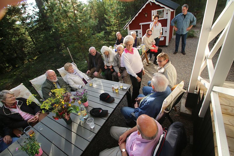 Zum Abschluss des Reiseprogrammes und weiterem Höhepunkt des Tages ging es mit dem Bus weiter nach Österböle zum Ferienhaus von Brigitte und Ronald Winkel. Dort wurde die Gruppe bereits erwartet zu einem festlich lockeren Ausklang der Schwedenreise. Schwestern und Brüder aus Bollnäs kamen hinzu. Sie hatten eine Musikgruppe mitgebracht, so dass mit einheimischen Liedern bei gutem Essen und Trinken ein fröhlicher Abschied gefeiert werden konnte.