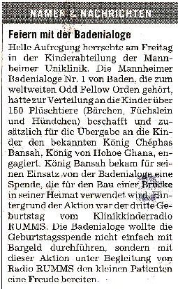 02.08.2013 Mannheimer Morgen Badenia-Loge als Engel |