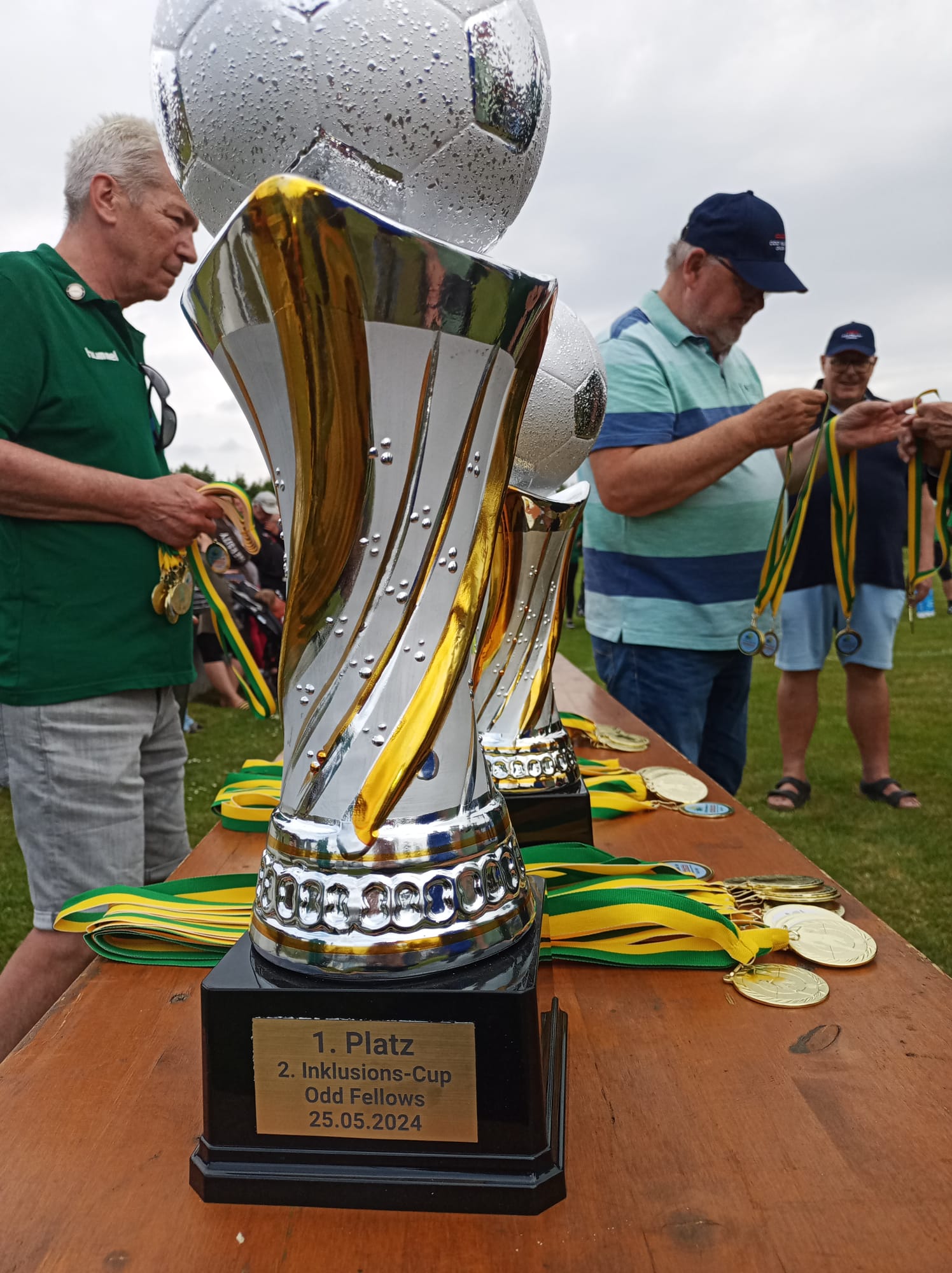 Sommerpause Das Foto zeigt den übergebenen Pokal an den 1. Sieger des Fußball Turnieres |