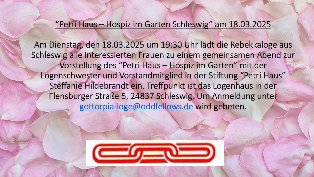 | Sitzungstag: dienstags, 14-tägig, 19.30 Uhr Sitzungsort: Logenhaus, Flensburger Str. 5, 24837 Schleswig |